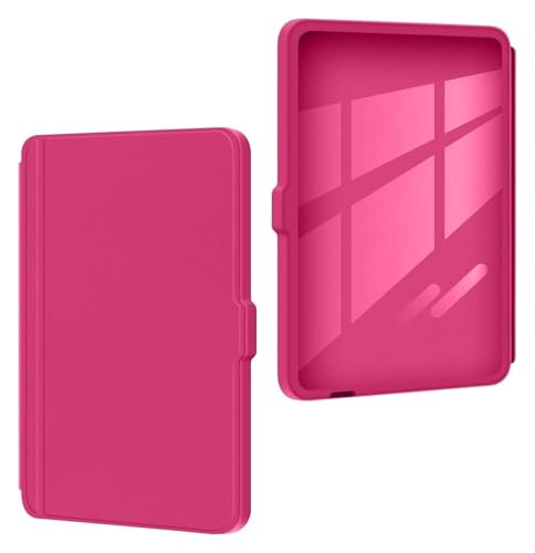 Coque arrière détachable en Acrylique Transparent, Compatible avec Kobo Clara BW N365, Housse pour liseuse 6 Pouces 2024, Cuir PU avec Veille Automatique(Rose Red)
