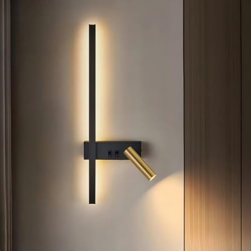 Budbuddy 3W+8W Lampe De Lecture Noir Applique Liseuse Avec Interrupteur Lampe De Chevet Pour Lire Moderne Applique De Chevet Liseuse Murale Pour Couloir Chambre à Coucher Hôtels(3000K)