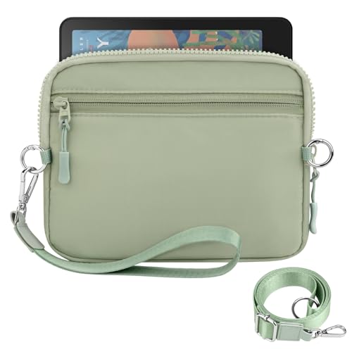 Dadanism 6-7 Pouces Housse de Protection Rembourréees avec Bandoulière et Dragonne pour 7" Kindle Paperwhite/Colorsoft, 6" Liseuses Kindle/Kobos/Nook, Housse avec Fentes pour Carte RFID, Vert Sauge