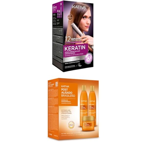 KATIVA Lot 3 Soins Lissage Brésilien – Shampooing + Après-Shampooing + Masque – Kératine Végétale & Acide Hyaluronique – Hydratation, Réparation, Anti-Frisottis – Jusqu’à 18 Semaines