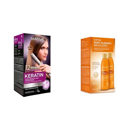 KATIVA – Kit Lissage Brésilien Végétalien Xpress à Double Kératine et Lot 3 Soins Lissage Brésilien – Shampooing + Après-Shampooing + Masque