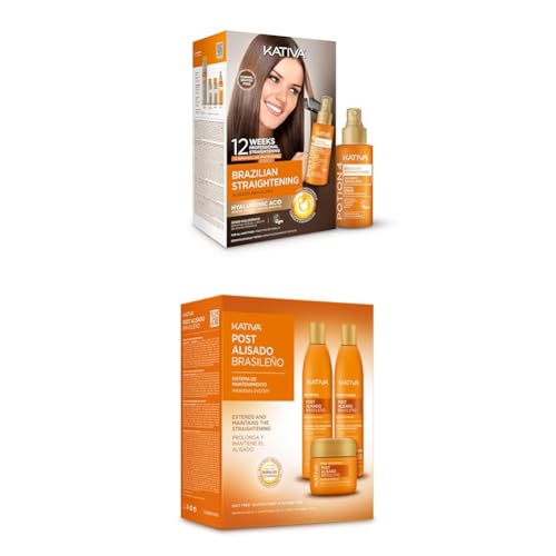 KATIVA Kit Lissage Brésilien à la Kératine avec Acide Hyaluronique et Lot 2 Soins Lissage Brésilien – Shampooing + Après-Shampooing