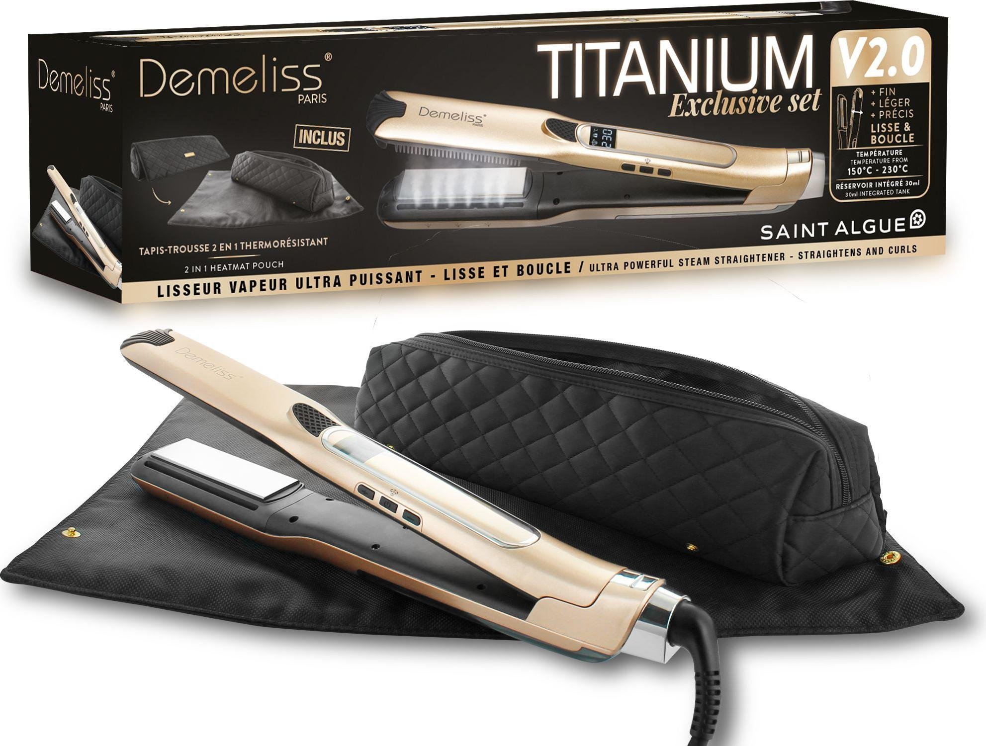 Lisseur Vapeur Saint Algue Demeliss Exclusive Set Tita V2, Titanium, Gold, Plaques Flottantes Titane, Réservoir 30ml, Pochette Thermorésistante
