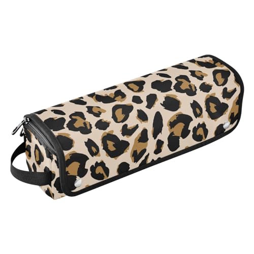 Sac à outils de coiffure avec tapis résistant à la chaleur, sac de rangement portable pour fer à friser, lisseur, brosses, pinces à cheveux et élastiques à cheveux - Imprimé léopard - Rose