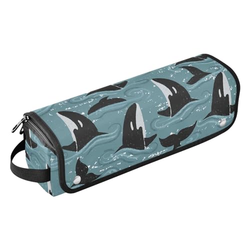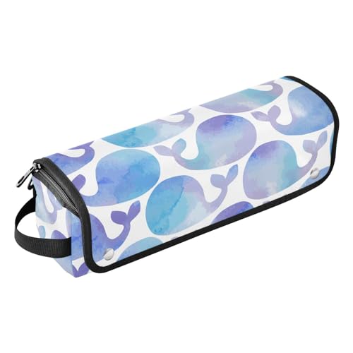 Sac à outils de coiffure avec tapis résistant à la chaleur, sac de rangement portable pour fer à friser, lisseur, brosses, pinces à cheveux et élastiques à cheveux - Motif baleines bleues