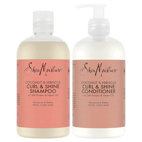 Shea Moisture Shampooing Boucles et Brillance Noix de Coco & Hibiscus pour cheveux épais + Shea Moisture Après-shampooing Boucles et Brillance Noix de Coco & Hibiscus pour cheveux épais