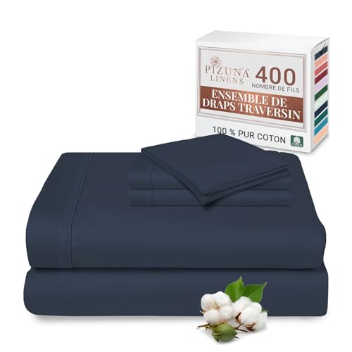 Pizuna Bleu Foncé 100% Coton Parure de Lit 140x200 2 Personne avec Traversin, Satin de Coton Mercerisé 400 Fils 1 Drap Housse, 1 Drap Plat, 2 Taie Oreiller, 1 Traversin (Drap de Lit 2 Personnes)