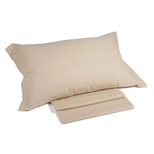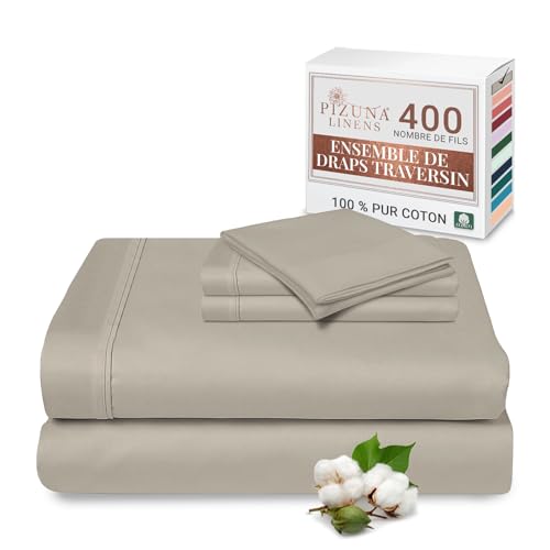 Pizuna Taupe Simple 100% Coton Parure de Lit 2 180x200 Personne avec Traversin, Satin de Coton Mercerisé 400 Fils 1 Drap Housse, 1 Drap Plat, 2 Taie Oreiller, 1 Traversin (Drap de Lit 2 Personnes)