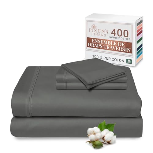 Pizuna Gris Foncé 100% Coton Parure de Lit 140x200 2 Personne avec Traversin, Satin de Coton Mercerisé 400 Fils 1 Drap Housse, 1 Drap Plat, 2 Taie Oreiller, 1 Traversin (Drap de Lit 2 Personnes)