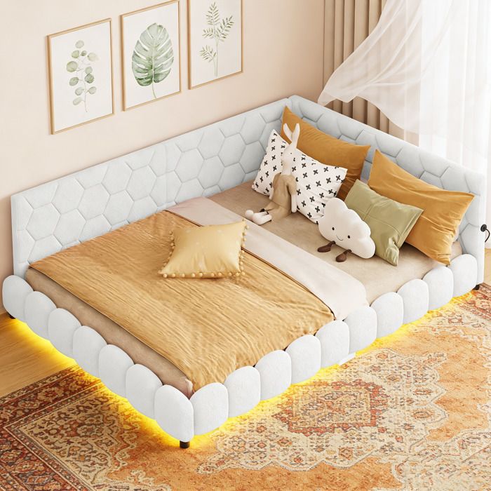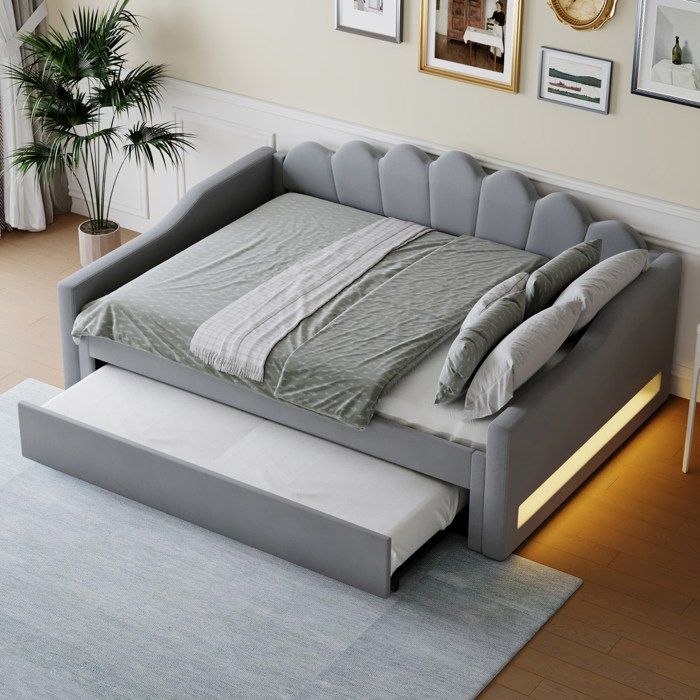 lit gigogne 140x200 cm lit rembourré avec bande LED canapé-lit enfant avec avec sommier à lattesgris