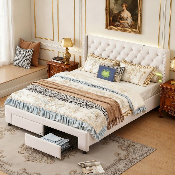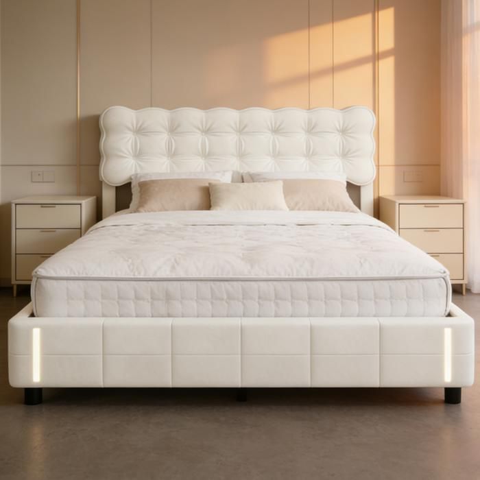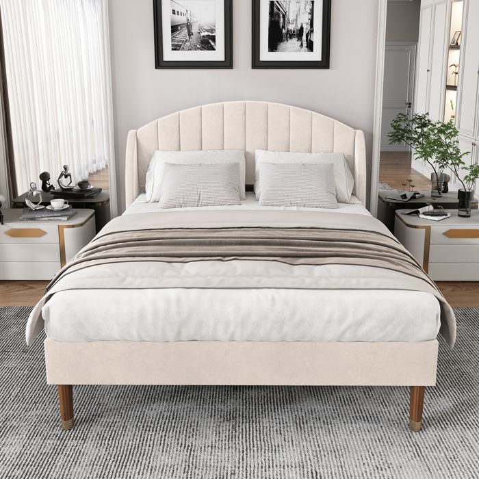 Lit 140x190 velours bordeaux POCKETPOP - Cadre bois & métal sommier à lattes tête en pétale 2 places
