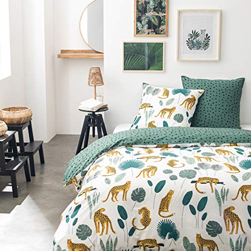 Today Parure de Lit 2 Personnes 220X240 Coton Imprime Blanc Jungle Sunshine 3.34