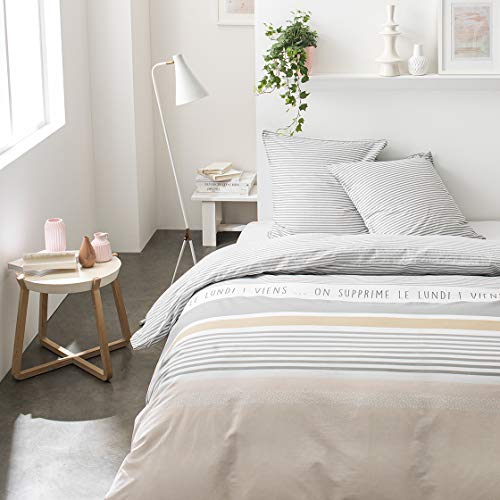 Amazon Basics Parure de Lit 2 Personnes 3 Pièces en Microfibre, Housse de Couette 200 x 200 cm et 2 Taies d'oreiller 50 x 80 cm, Beige Rayé