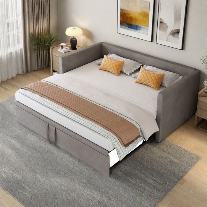 Lit coffre adulte 160x200 cm avec sommier - lit 2 places avec usb type c - lin - gris (sans matelas)