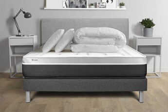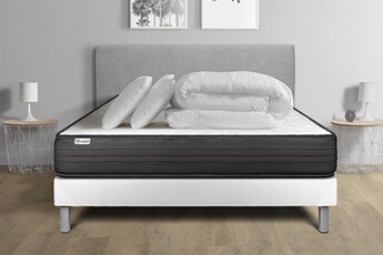 Pack lit complet 200x200 cm - Matelas + Sommier Gris (en kit) + 2 oreillers + Couette - Actilatex Ze
