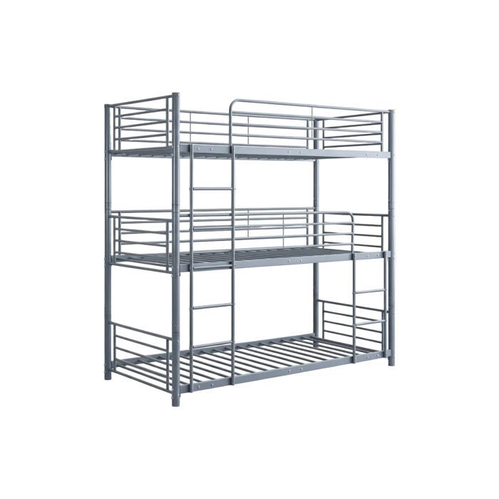 Lit superposé 90x200 cm lit enfant, 3 couchages, led, bureau, usb + prise, métal blanc, sans matelas