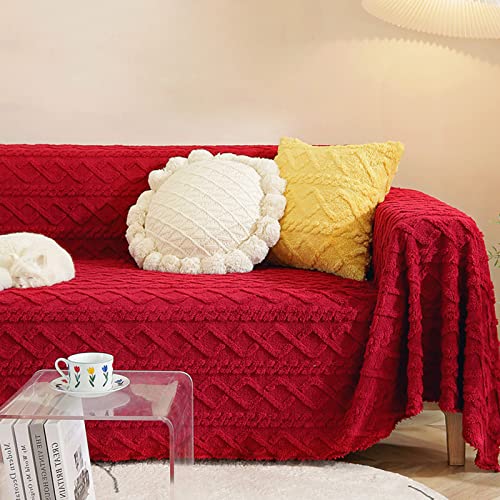 Housse de canapé Peluche épaissie Housse de canapé Inversible Couverture Polyvalente Douce Chaud Lavable Protection de Meubles pour canapé-lit 1-4 Places(Rouge,180x260 cm