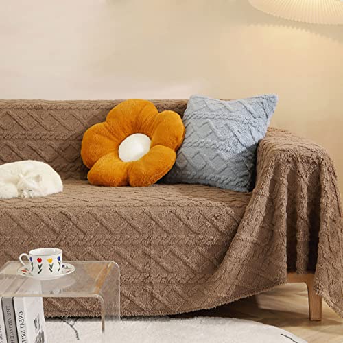 Housse de canapé Peluche épaissie Housse de canapé Inversible Couverture Polyvalente Douce Chaud Lavable Protection de Meubles pour canapé-lit 1-4 Places(Brun1,180x130 cm