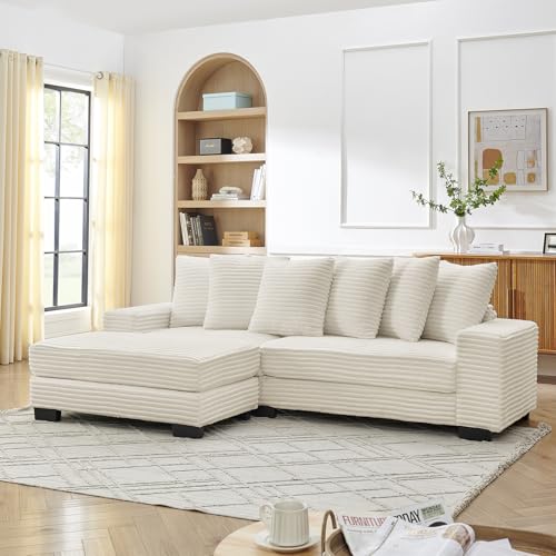 WENNEWU Canapé d'angle Convertible Lit Modulaire en Forme de L, Conception Modulaire avec 6 Coussin Matelassés, Canapé-Lit d'angle 4 Places pour Salon, Appartement et Bureau,Beige + Corduroy+ 4 Seat