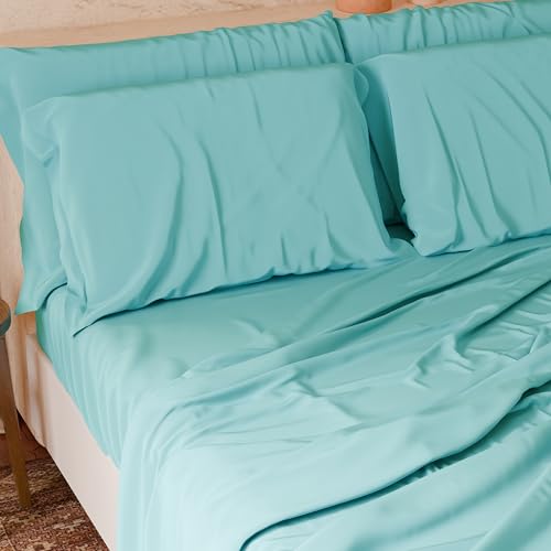 PETTI Artigiani Italiani - Parure de lit 4 Places et demie françaises, Douces et Respirantes, avec Drap Plat, Drap Housse avec Coins élastiques et 2 taies d'oreiller de draps Bleu Clair