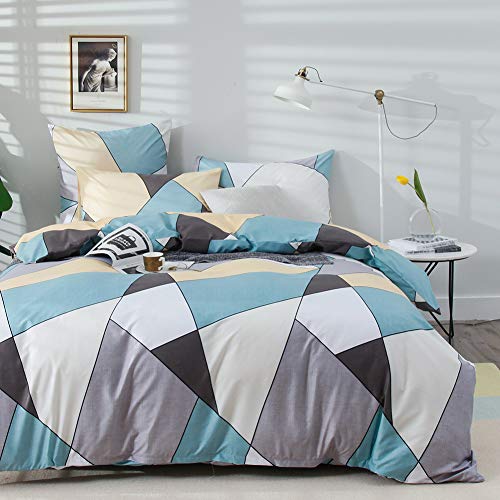 Michorinee Housse de Couette Géométrique 200x200 Bleu et Blanc - Parure de Lit Adulte 2 Personnes en Microfibre - Linge de Lit Imprimé avec Fermeture Éclair, 2 Taies d'oreiller 65x65 cm