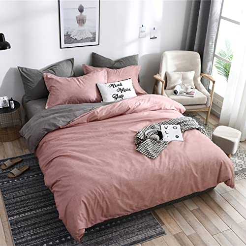 Michorinee Housse de Couette 220 x 240 cm Rose Parure de Lit Adulte 2 Personnes avec Fermeture Éclair 3 pièces Parure Housse Couette Rose et Gris Réversible et 2 Taie d'oreiller 65x65 cm