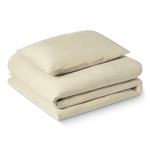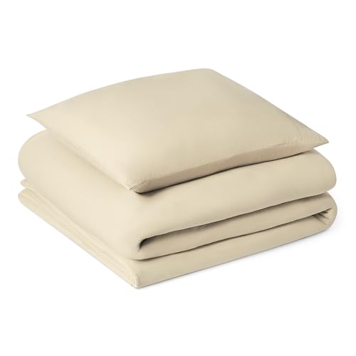 Amazon Basics Parure de Lit 1 Personne 2 Pièces en Microfibre Prélavée, Extra Douce avec Effet Froissé Naturel, sans Repassage, Housse de Couette 135 x 200 cm et 1 Taie d'oreiller 65 x 65 cm, Beige