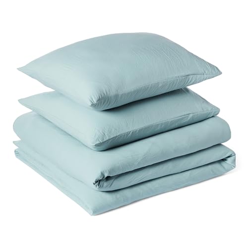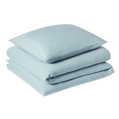 Amazon Basics Parure de Lit 1 Personne 2 Pièces en Microfibre Prélavée, Extra Douce avec Effet Froissé Naturel, sans Repassage, Housse de Couette 135 x 200 cm et 1 Taie d'oreiller 65 x 65 cm, Bleu
