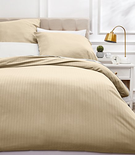 Amazon Basics Parure de Lit 2 Personnes 3 Pièces en Microfibre, Housse de Couette 230 x 220 cm et 2 Taies d'oreiller 50 x 80 cm, Beige Rayé
