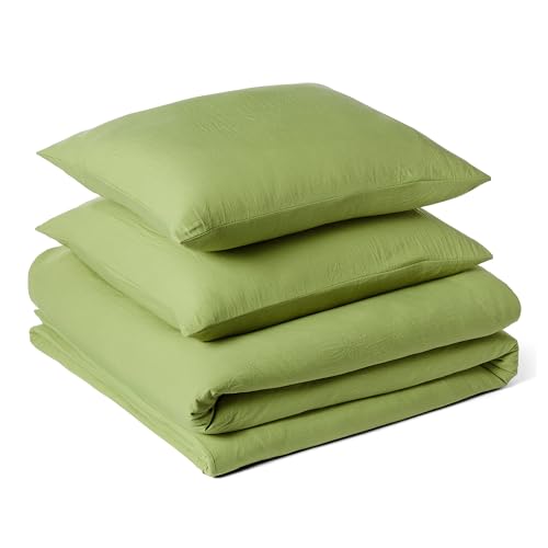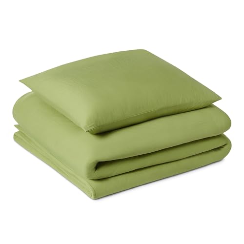 Amazon Basics Parure de Lit 1 Personne 2 Pièces en Microfibre Prélavée, Extra Douce avec Effet Froissé Naturel, sans Repassage, Housse de Couette 135 x 200 cm et 1 Taie d'oreiller 65 x 65 cm, Vert