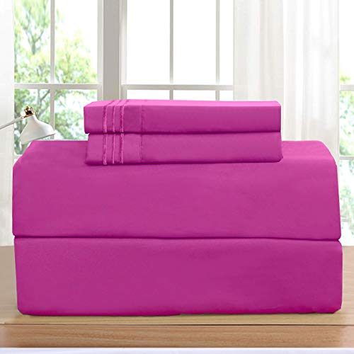 Elegant Comfort Amazon Parure de lit 4 pièces résistante aux Plis, à la décoloration et aux Taches avec Poche Profonde pour lit Simple/lit Simple XL, Rose Vif