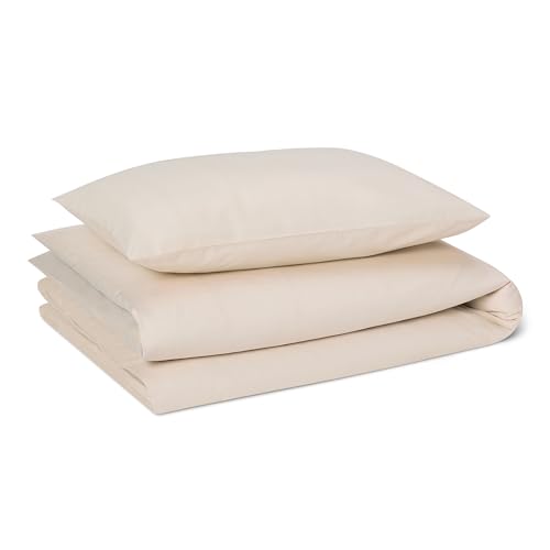 Amazon Basics Parure de Lit 1 Personne 2 Pièces en Microfibre Prélavée, Extra Douce avec Effet Froissé Naturel, sans Repassage, Housse de Couette 135 x 200 cm et 1 Taie d'oreiller 50 x 80 cm, Beige
