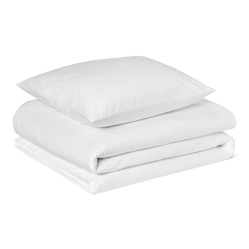 Amazon Basics Parure de Lit 1 Personne 2 Pièces en Coton Bio Doux, Housse de Couette 135 x 200 cm et 1 Taie d'oreiller 65 x 65 cm, Blanc