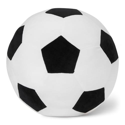 Amazon Basics Football Peluche Coussin, Jouet Oreiller Peluche Style Sport pour Lit ou Canapé, Décoration Chambre Enfant, Noir et Blanc