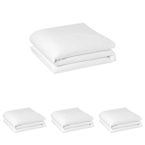 Amazon Basics Housse de Couette pour Lit Double Deluxe, 100% Coton Satin 400 Fils, Extra-Doux avec Boutons-Pression, 220 x 240 cm, Blanc (Lot de 4)