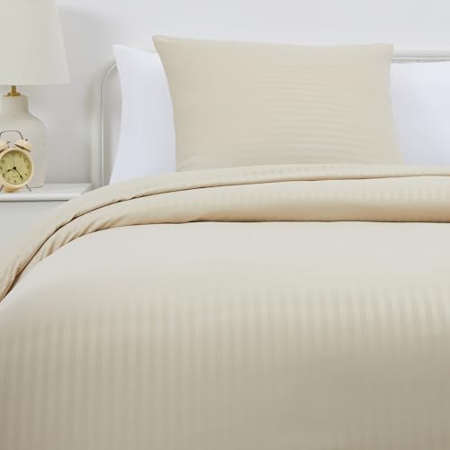 Amazon Basics Parure de Lit 1 Personne 2 Pièces en Microfibre, Housse de Couette 135 x 200 cm et 1 Taie d'oreiller 65 x 65 cm, Beige Rayé