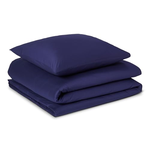 Amazon Basics Parure de Lit 1 Personne 2 Pièces en Coton Bio, Housse de Couette 135 x 200 cm et 1 Taie d'oreiller 65 x 65 cm, Bleu Marine