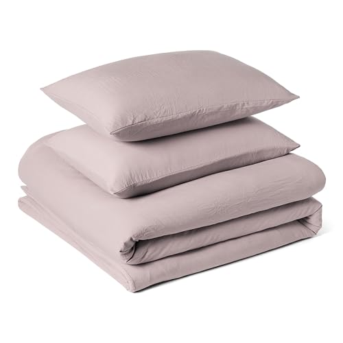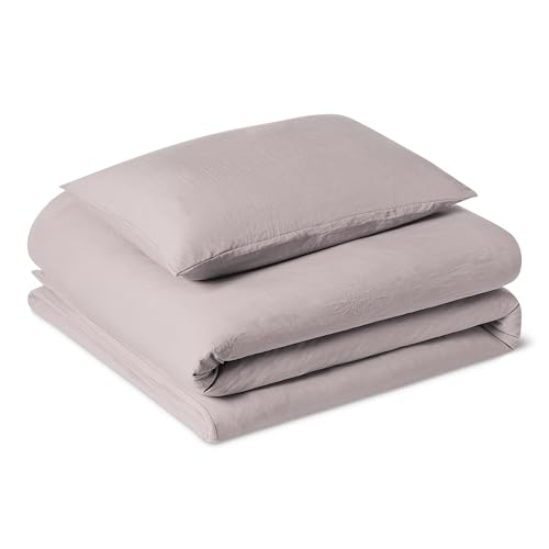 Amazon Basics Parure de Lit 1 Personne 2 Pièces en Microfibre Prélavée, Extra Douce avec Effet Froissé Naturel, sans Repassage, Housse de Couette 135 x 200 cm et 1 Taie d'oreiller 65 x 65 cm, Violet