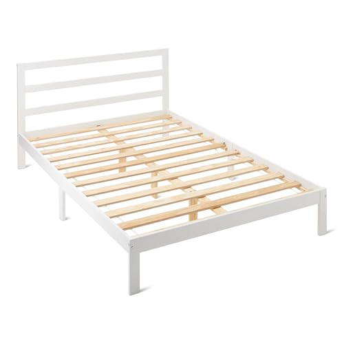Amazon Basics Cadre de Lit Double avec Tête de Lit, Pin Massif avec Lattes, 140cm x 200cm, Double, Blanc