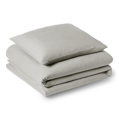 Amazon Basics Parure de Lit 1 Personne 2 Pièces en Microfibre Prélavée, Extra Douce avec Effet Froissé Naturel, sans Repassage, Housse de Couette 135 x 200 cm et 1 Taie d'oreiller 65 x 65 cm, Gris