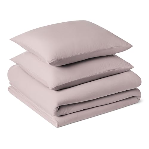 Amazon Basics Parure de Lit 2 Personnes 3 Pièces en Microfibre Prélavée, Extra Douce avec Effet Froissé Naturel, Sans Repassage, Housse de Couette 240 x 220 cm et 2 Taies d'oreiller 65 x 65 cm, Violet