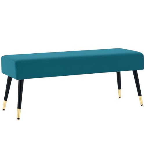 HOMCOM Banc Bout de lit Banquette rembourrée en Velours Banc d'entrée avec Pieds en métal, pour Chambre Salle à Manger Salon Couloir, 109,5 x 39,5 x 45,5 cm, Vert