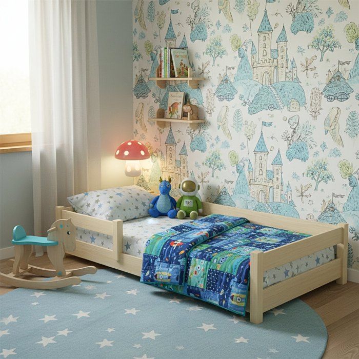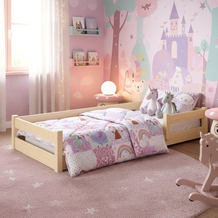 Lit superposé enfant bas 90x200 cm avec échelle de sécurité et sommier à lattes, bois blanc chicfurn
