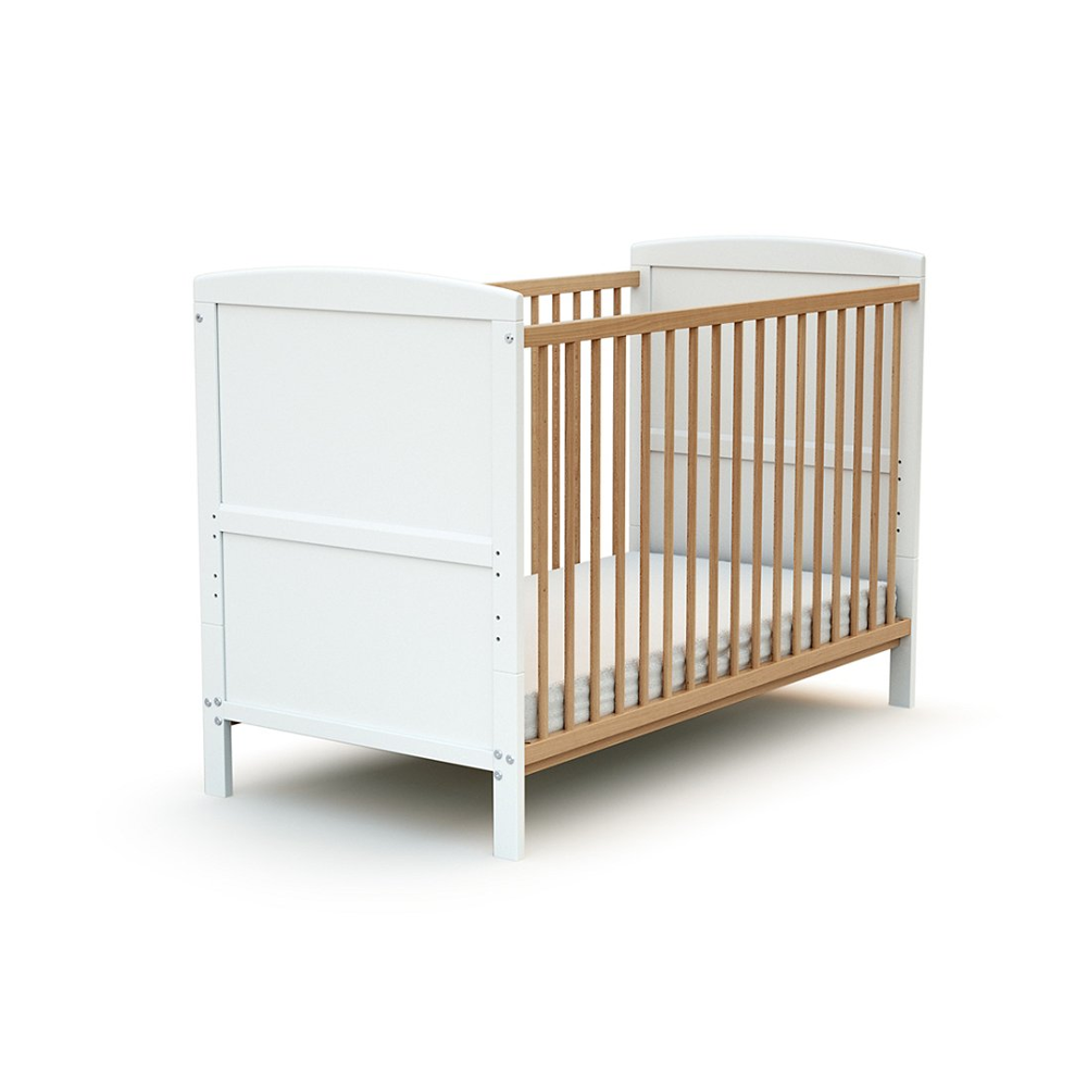 Kocot Victor spjälsäng för baby, utan madrass vit laminat och naturfärgad ek (120x60)