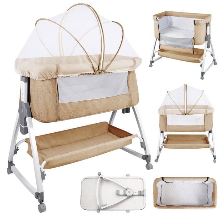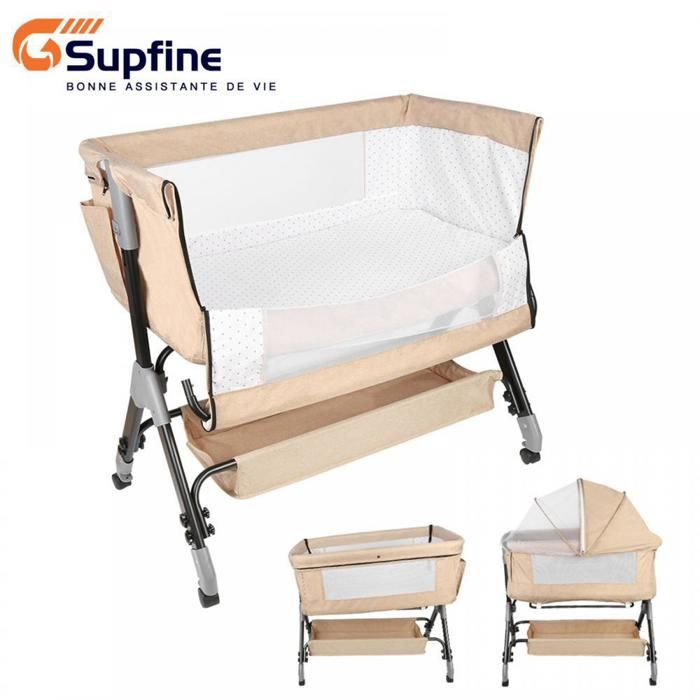 SUPFINE Berceau Cododo Lit évolutif pour Bébé à Roulettes Moustiquaire Rangement Réglable en 4 Hauteurs