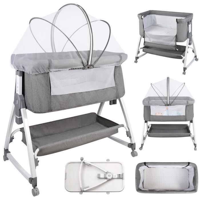 Gris Berceau Cododo pliable pour bébé: Lit de chevet 80x40cm Lit dappoint évolutif Hauteur réglable 6 modes et Mobile à