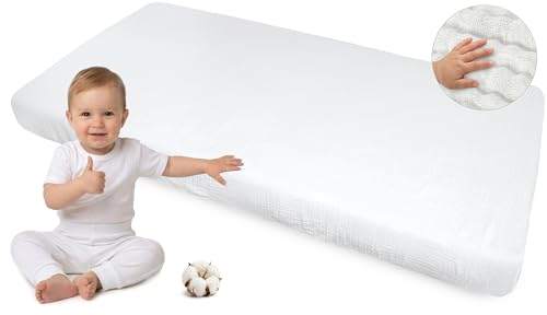 Medi Partners Drap Housse 60x120 lit Bebe Matelas Enfant Bébé - 100% Coton Mousseline Fitted Draps Lit pour Baby Bed Cover Sheets Matela literie Mattress Couette (Blanc)