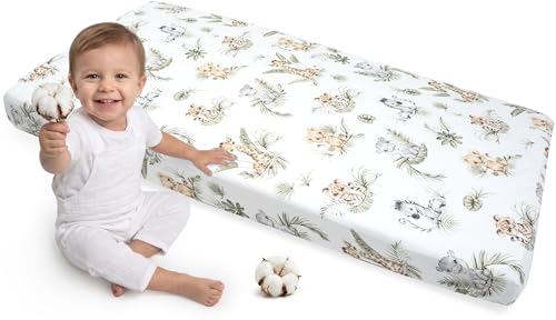 Medi Partners Drap Housse 60x120 lit Bebe Matelas Enfant Bébé - 100% Coton Fitted Draps Lit pour Baby Bed Cover Sheets Matela literie Mattress Couette (Safari)