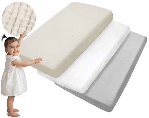 Medi Partners Drap Housse 60x120 Lot de 3 Draps lit Bebe Matelas Enfant Bébé - 100% Coton Fitted Draps Lit pour Baby Bed Cover Sheets Matela literie Mattress Couette (Beige-Gris-Blanc)