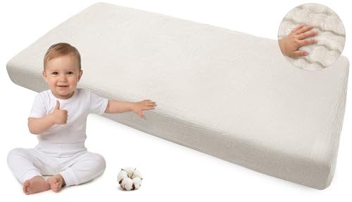 Medi Partners Drap Housse 60x120 lit Bebe Matelas Enfant Bébé - 100% Coton Mousseline Fitted Draps Lit pour Baby Bed Cover Sheets Matela literie Mattress Couette (Beige)